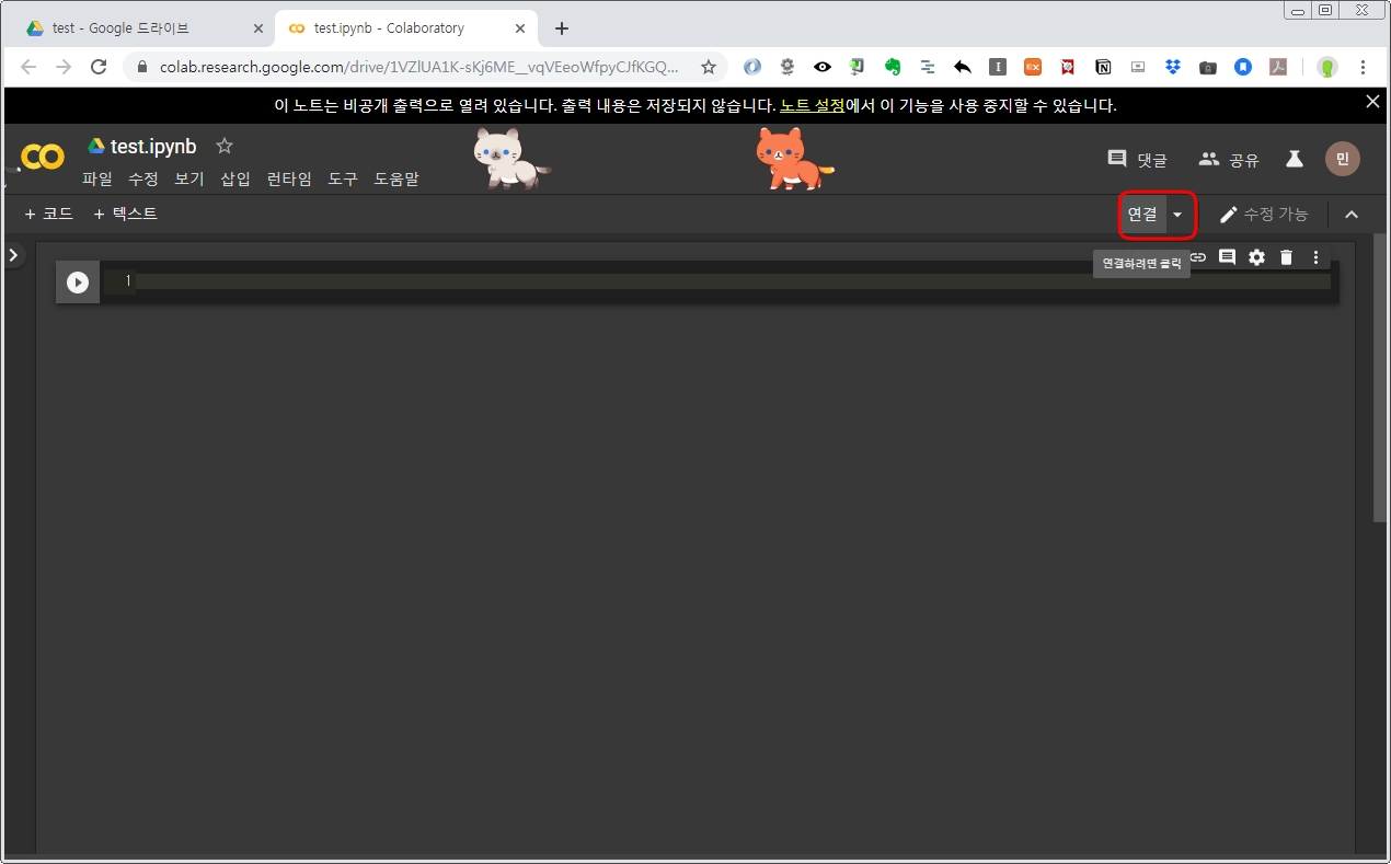 이로써 Colab을 활용하여 머신러닝 및 딥러닝을 학습하기 위한 준비가 완료되었다. 다음 포스트에서는 캐글과의 연동 실습을 주제로 보다 심도있게 사용하는 방법을 다뤄보겠다.