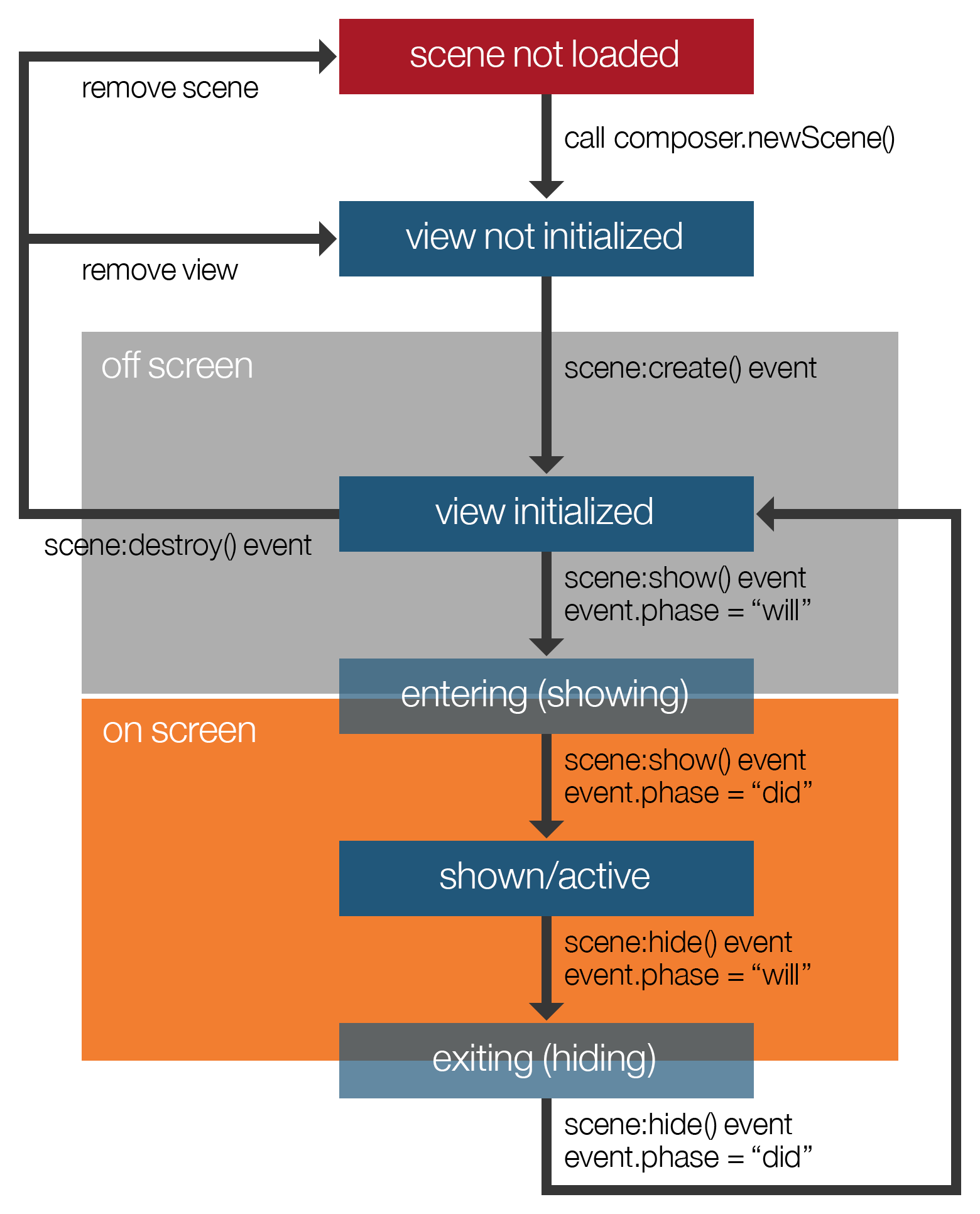 -- the scene is removed entirely (not recycled) via "composer.removeScene()"