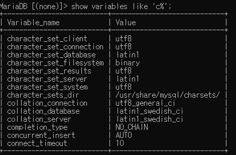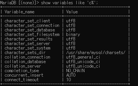> show variables like 'c%';