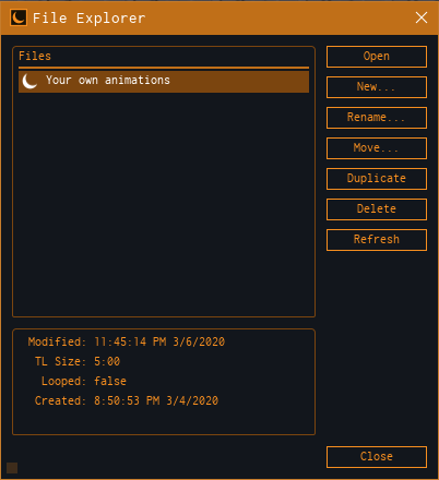File Explorer is also the second option of a Moon Animator and it is used to navigate and manage the ‘.xsixx’ files and folders.