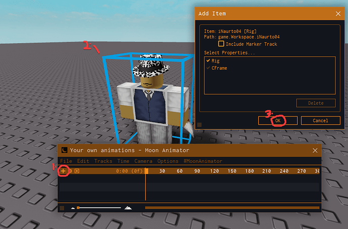 To animate CFrame in Moon, select the part in Explorer window, choose some Studio tools, select the properties panel in the timeline, then keyframe it manually since CFrame in Moon doesn’t have auto-keyframing.