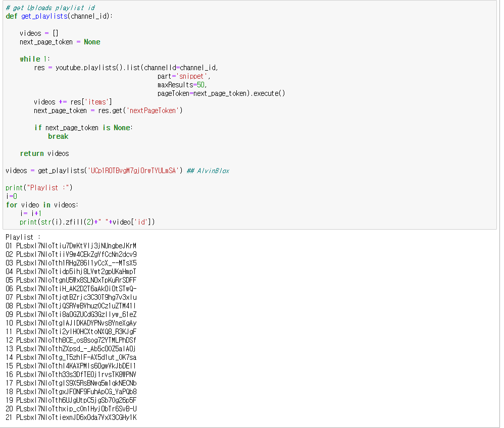 playlist_id = res['items'][0]['contentDetails']['relatedPlaylists']['uploads']