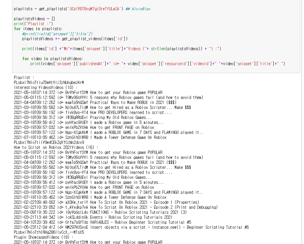 playlists = get_playlists('UCp1R0TBvgM7gj0rwTYULmSA') ## AlvinBlox