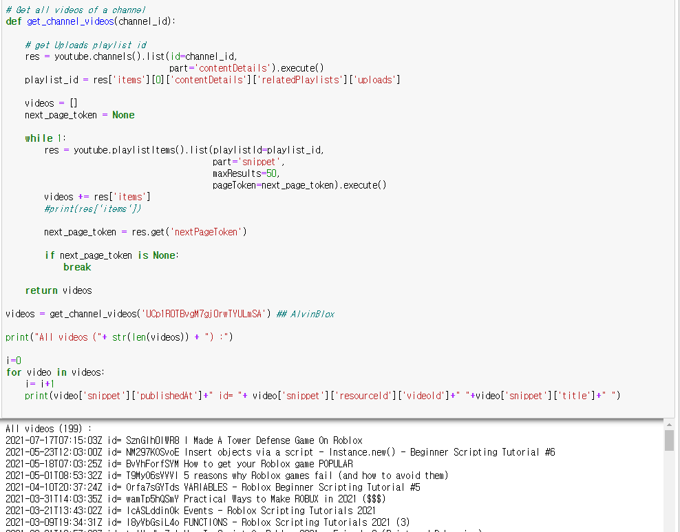 videos = get_channel_videos('UCp1R0TBvgM7gj0rwTYULmSA') ## AlvinBlox