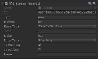 iTween.MoveBy(gameObject, iTween.Hash("x", 2, "easeType", "easeInOutExpo", "loopType", "pingPong", "delay", 0.1));