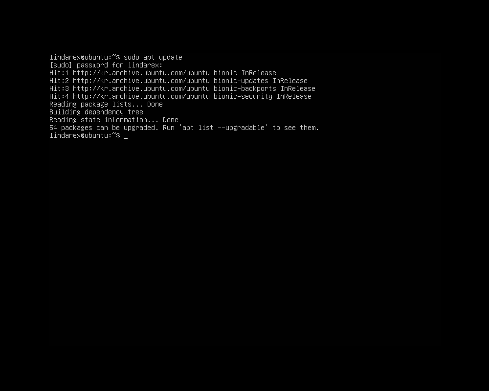 - ‘apt update’ command로 패키지 인덱스를 업데이트합니다.