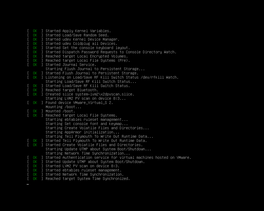 - 정상 설치 후 로그인 프롬프트 상태입니다.
