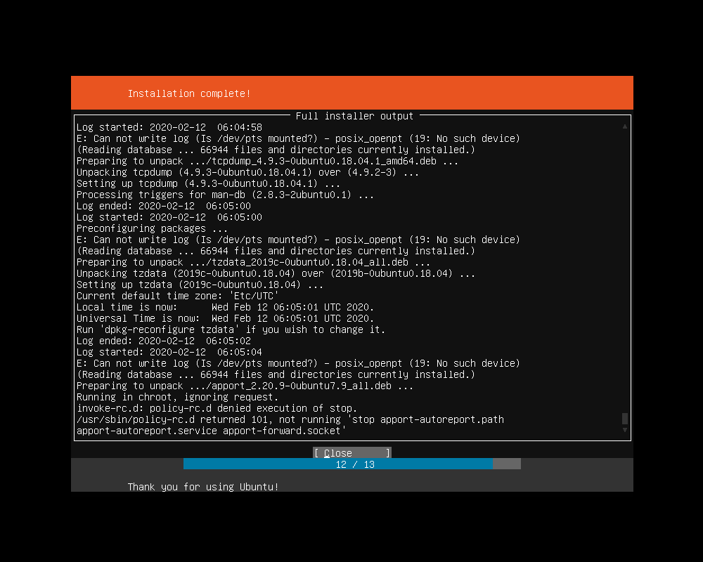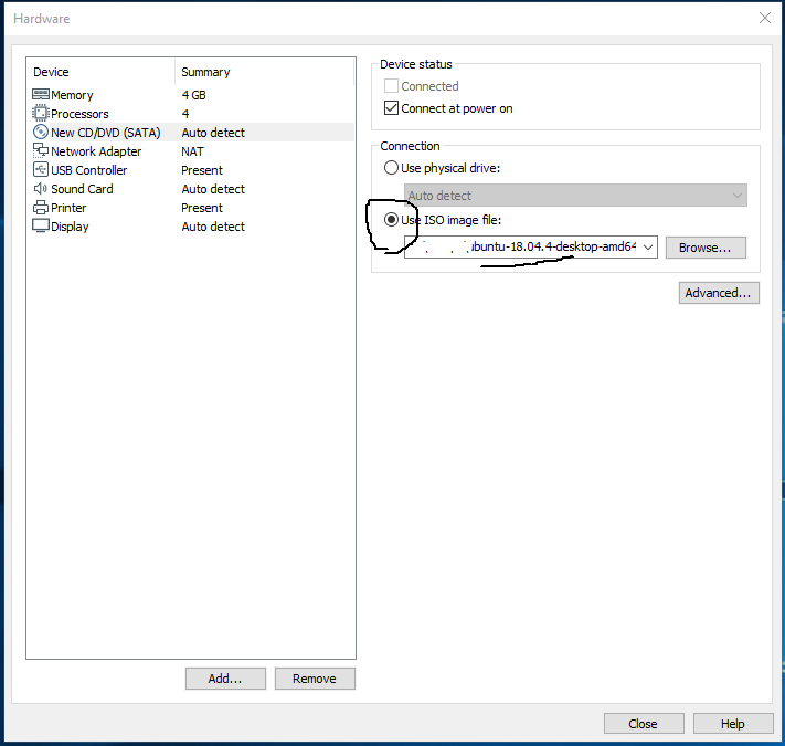 - Choose the Ubuntu 18.04 LTS ISO and then click the Close Button to finalize the hardware