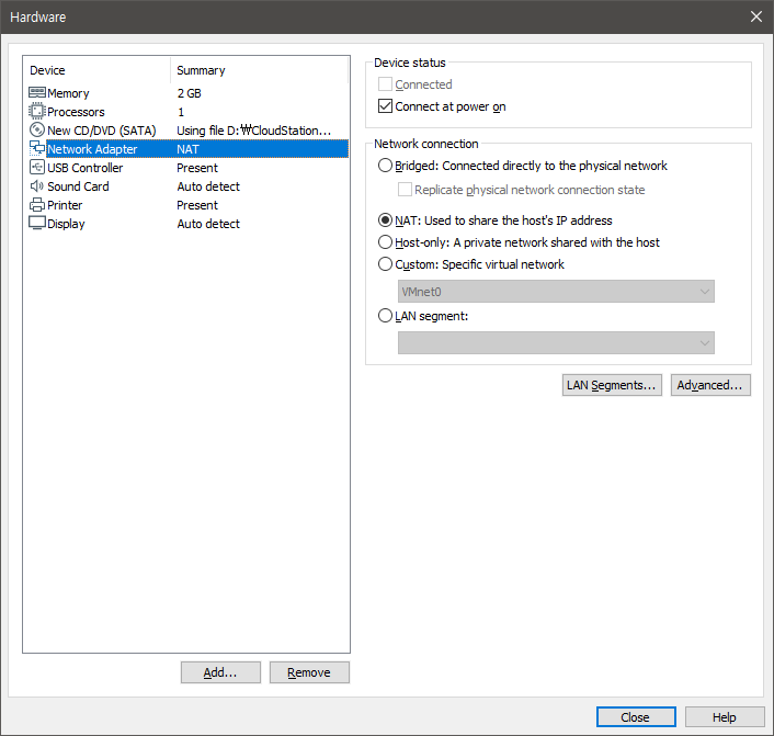 - VMware workstation의 VM(virtual machine) 설정 (VMware Player 15 기준)