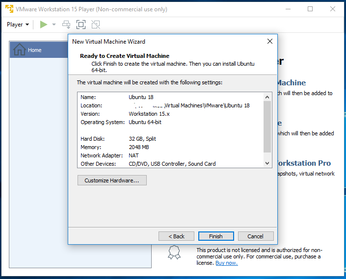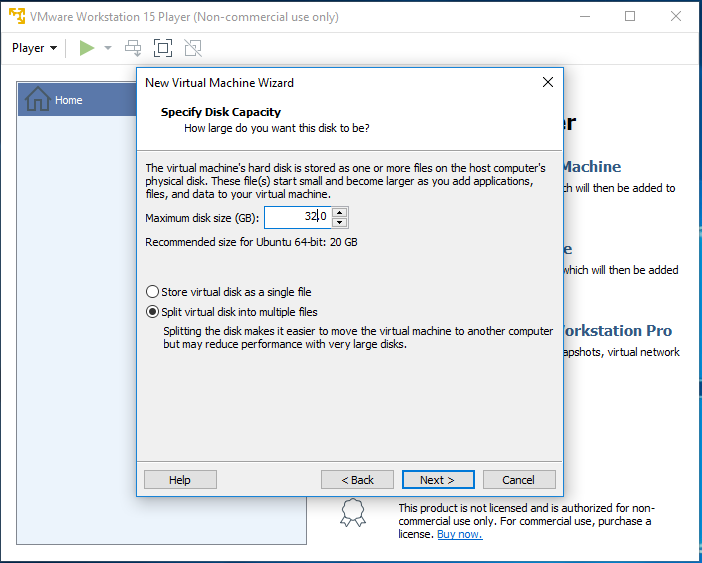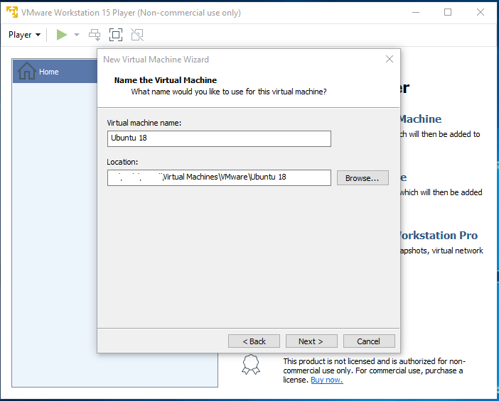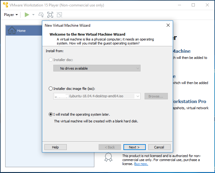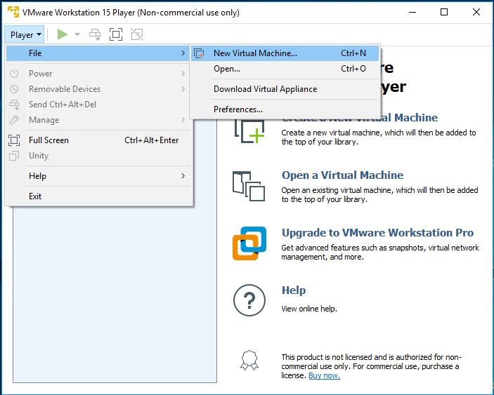 - Player -> File -> New Virtual Machine OR Create a New Virtual Machine Link