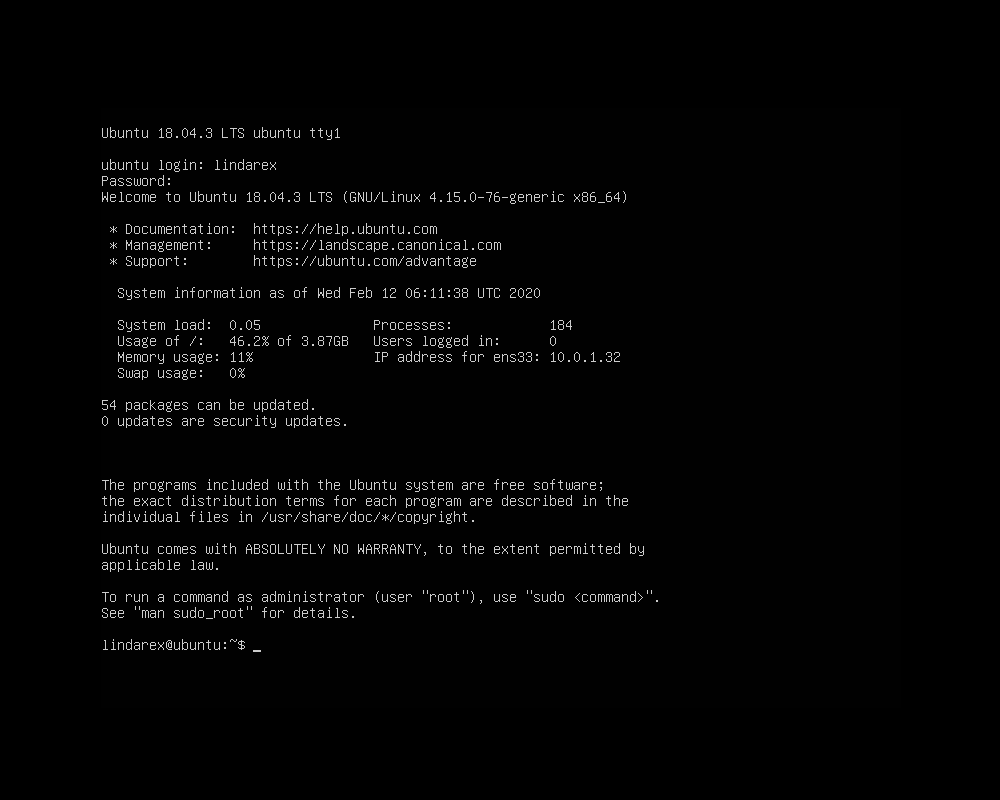 - Ubuntu 18.04.5 LTS (Bionic Beaver) Server (64-bit)