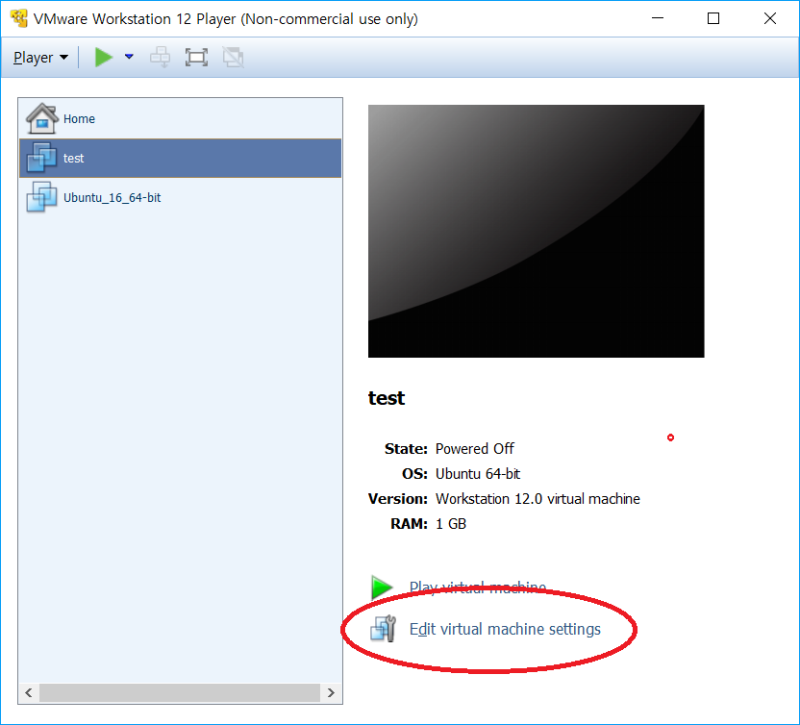 2-1) 가상머신을 실행하기 전에 Edit virtual machine setting을 클릭한다.